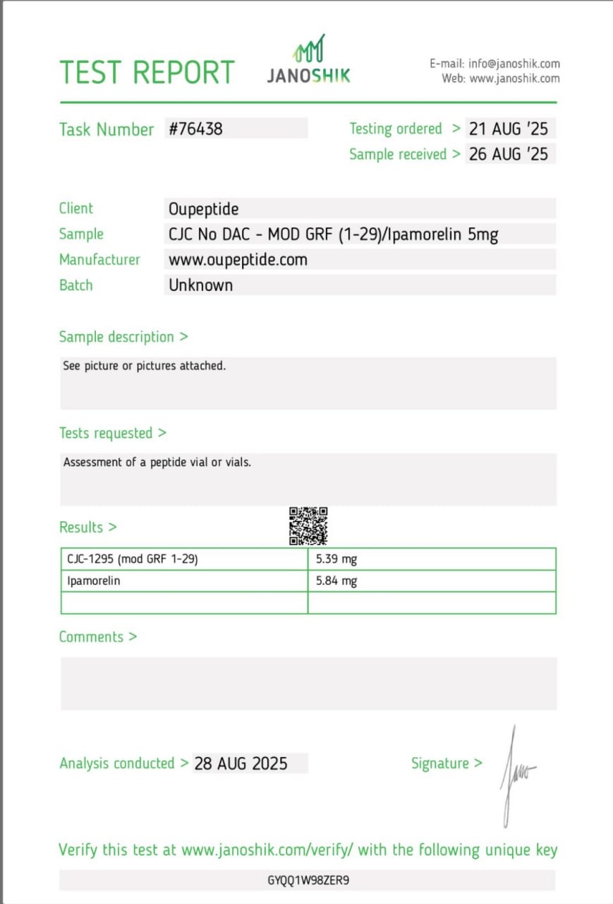 Fixed-ratio CJC-1295 (no DAC) and Ipamorelin blend formulated for